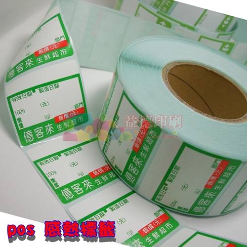 感熱標籤貼紙可成捲印製,適用於大賣場或物流業者利用感熱條碼機或列印機進行印製即可因熱感應印製標籤