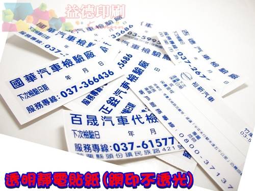 汽車保養維修貼紙~就是都採用靜電貼紙貼附於玻璃上,