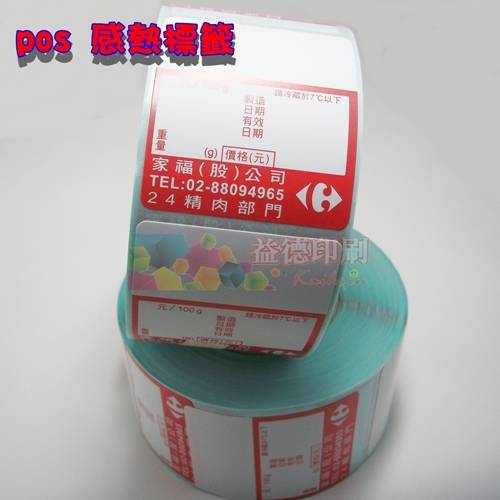 感熱標籤貼紙可成捲印製,適用於大賣場或物流業者利用感熱條碼機或列印機進行印製即可因熱感應印製標籤