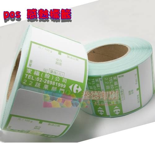 感熱標籤貼紙可成捲印製,適用於大賣場或物流業者利用感熱條碼機或列印機進行印製即可因熱感應印製標籤