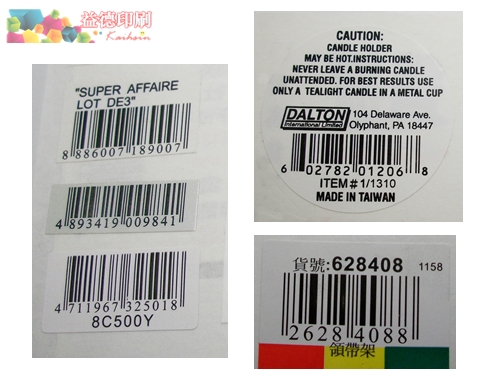 產品條碼標籤~為商標標籤中商條碼使用,此為統一的標籤識別產品標籤,方便賣場或物流業者銷售及POS掃描使用的產品條碼標籤