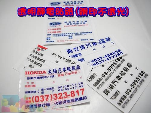 汽車保養維修貼紙~就是都採用靜電貼紙貼附於玻璃上,