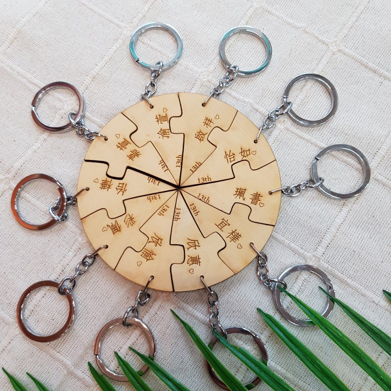 原木多片拼圖鑰匙圈
