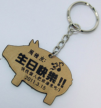 皮革小豬造型切割鑰匙圈